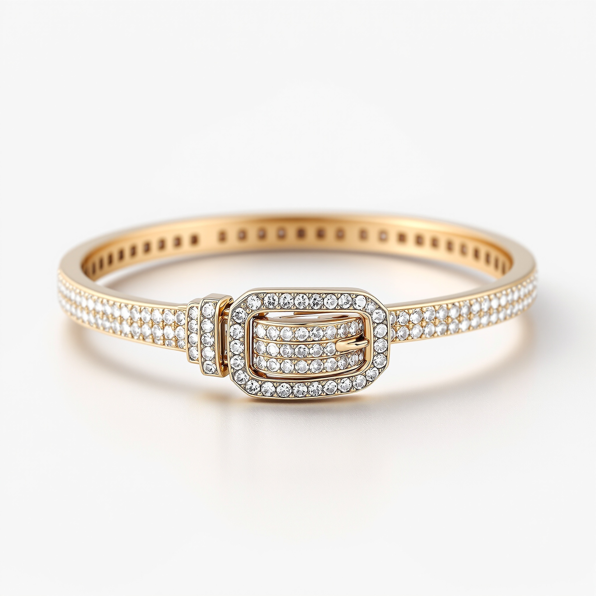 2重に配されたバックルデザインには、パヴェセッティングされたダイヤモンドが贅沢に敷き詰められ、手首の動きに合わせて繊細な輝きを放ちます。