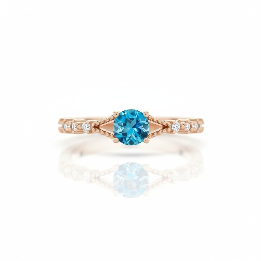 鮮やかなブルートパーズを中央にセッティングした、K18ピンクゴールドのクラシカルリング。