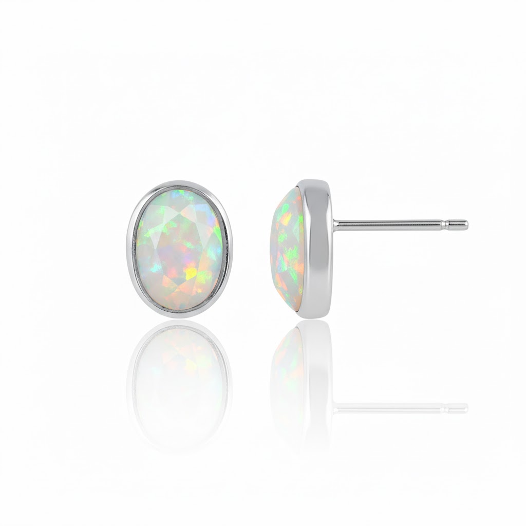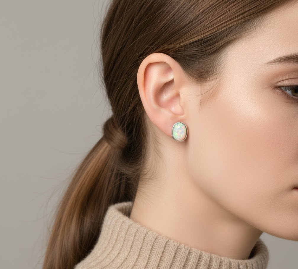 乳白色の中に虹色の光が浮かぶ、上質なエチオピア産ホワイトオパールを贅沢に使用したプラチナピアス。見る角度によってブルー、グリーン、ピンクなど多彩な色彩が揺らめき、唯一無二の輝きを放ちます。石を包み込むようにセッティングされた滑らかなベゼルデザインは、オパールの自然な美しさを引き立てながら、日常使いにも安心の耐久性を実現。地金にはプラチナ950を採用し、クールで上品な輝きが耳元を洗練された印象に仕上げます。どんなスタイルにも調和するミニマルなデザインで、フォーマルにもカジュアルにも対応可能。上品で柔らかな光が、顔まわりに優しい彩りを添えるジュエリーです。